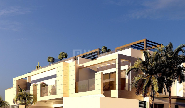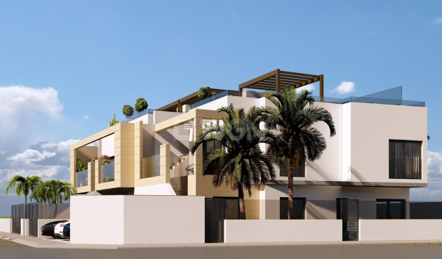 Neubau-Bungalows in Lo Pagán: Modernes Leben in Strandnähe Privilegierte Lage in Lo Pagán, San Pedro del Pinatar Entdecken Sie den perfekten Lebensstil an der Küste mit diesen neu gebauten Bungalows in Lo Pagán, einer charmanten Gegend von San Pedro del Pinatar. Nur 1,2 km vom wunderschönen Strand Playa de Villa Nanitos entfernt, sind Sie in 15 Minuten zu Fuß an Sandstränden und der berühmten Windmühle Molino Quintín. Diese privilegierte Lage ist ideal für Strandliebhaber und Wassersportler, da Yachtclubs und Yachthäfen in unmittelbarer Nähe liegen. Außerdem sind alle wichtigen Dienstleistungen wie Supermärkte, Bars und Restaurants nur wenige Gehminuten entfernt. Eigenschaften Diese eleganten Bungalows verfügen über 2 Schlafzimmer, 2 Badezimmer, eine offene Küche und ein Wohnzimmer. Die Bungalows verfügen über eine Vorinstallation für eine Klimaanlage, Einbauschränke und eine moderne Innenausstattung. Die Einheiten im Erdgeschoss verfügen über eine große Terrasse mit der Möglichkeit, einen privaten Pool hinzuzufügen (gegen Aufpreis erhältlich), während die Einheiten im Obergeschoss über eine private Sonnenterrasse mit Pool verfügen, die sich perfekt zum Entspannen unter der mediterranen Sonne eignet. Hochwertige Ausstattung Jeder Bungalow verfügt über einen Parkplatz und alle Apartments sind hochwertig ausgestattet. Zur Ausstattung gehören Bosch-Küchengeräte, elektrische Rollläden, Vorinstallation für eine Klimaanlage, voll ausgestattete Badezimmer und LED-Beleuchtung im Innen- und Außenbereich. Ideal für das ganze Jahr Lo Pagán bietet einen ruhigen Lebensstil mit einer einladenden und etablierten Gemeinschaft. Dank des milden Winterklimas der Region können die Bewohner das ganze Jahr über Aktivitäten genießen. Die Gegend verfügt über Hallenbäder, Sportanlagen und ein vielfältiges Angebot an gesellschaftlichen Veranstaltungen. Die natürlichen Schlammbäder und das ruhige Wasser des Mar Menor tragen zu seiner Attraktivität bei und machen ihn zu einem privilegierten Ort für Wellness und Entspannung. Sehenswürdigkeiten in der Nähe Einkaufszentrum Dos Mares: 5 Minuten mit dem Auto Flughafen Murcia (Corvera): 30 Minuten mit dem Auto Flughafen Alicante: 1 Stunde mit dem Auto Golfplätze und Yachthäfen sind nur eine kurze Autofahrt entfernt, was diesen Ort sowohl für Freizeitaktivitäten als auch für einen komfortablen Lebensstil ideal macht.