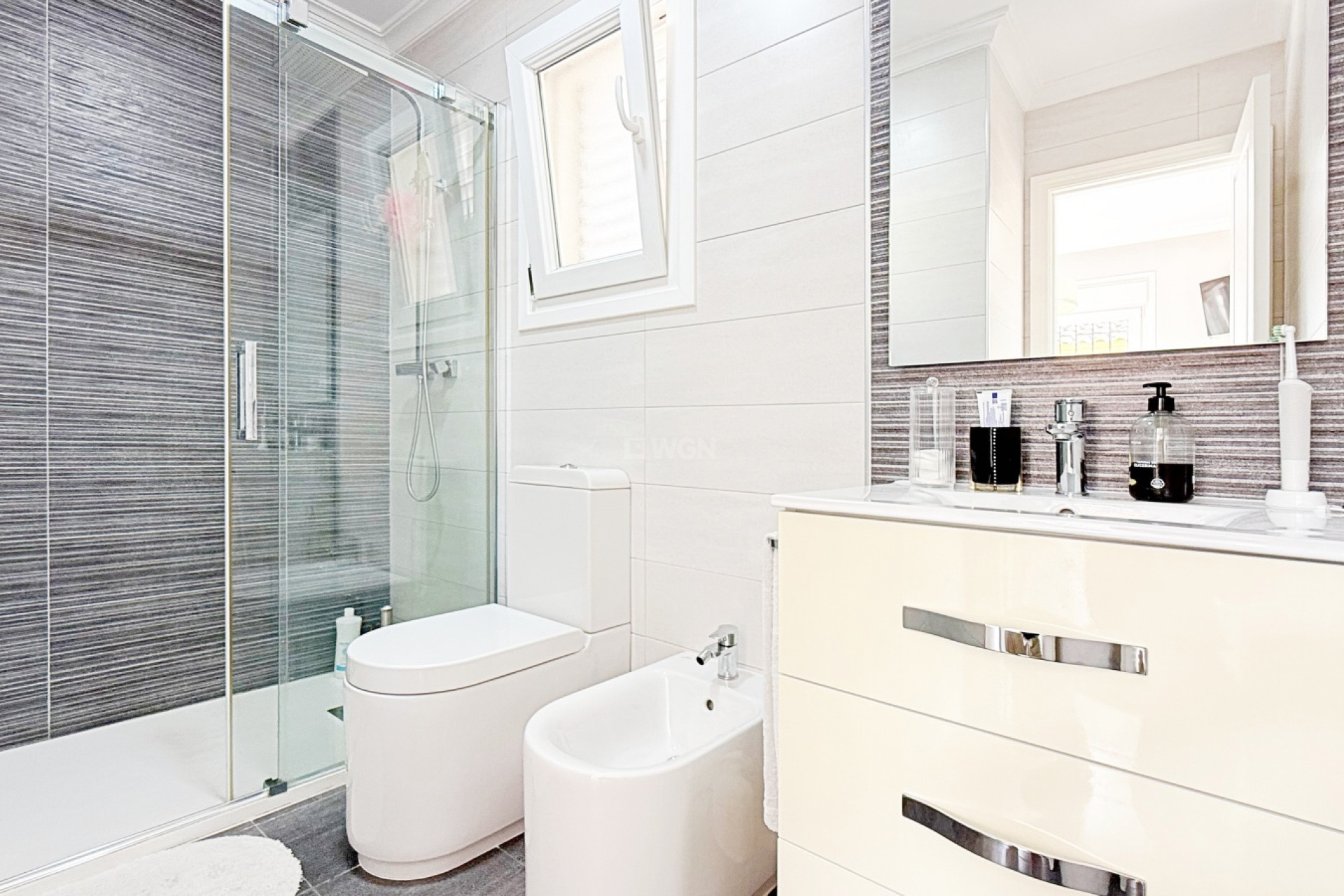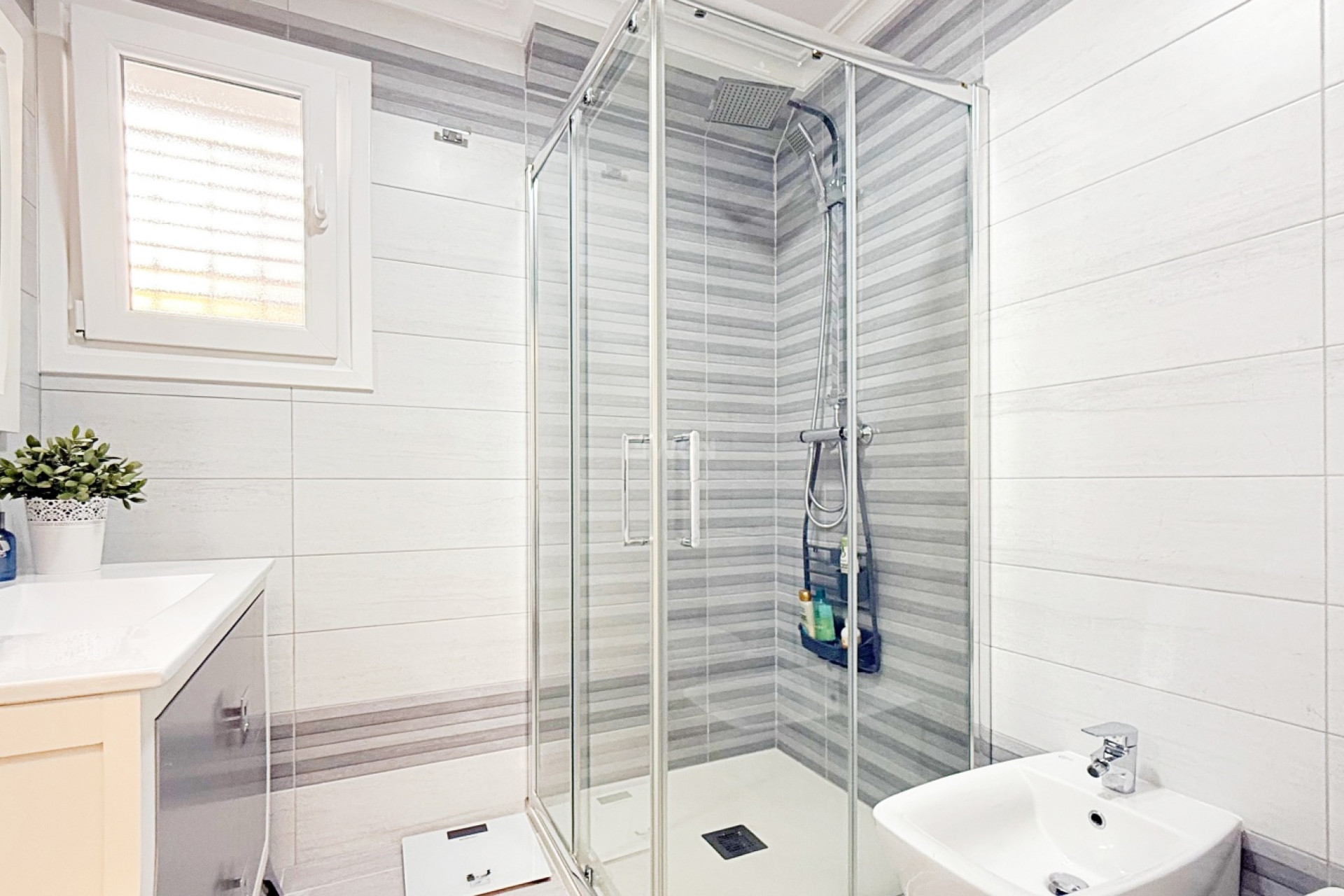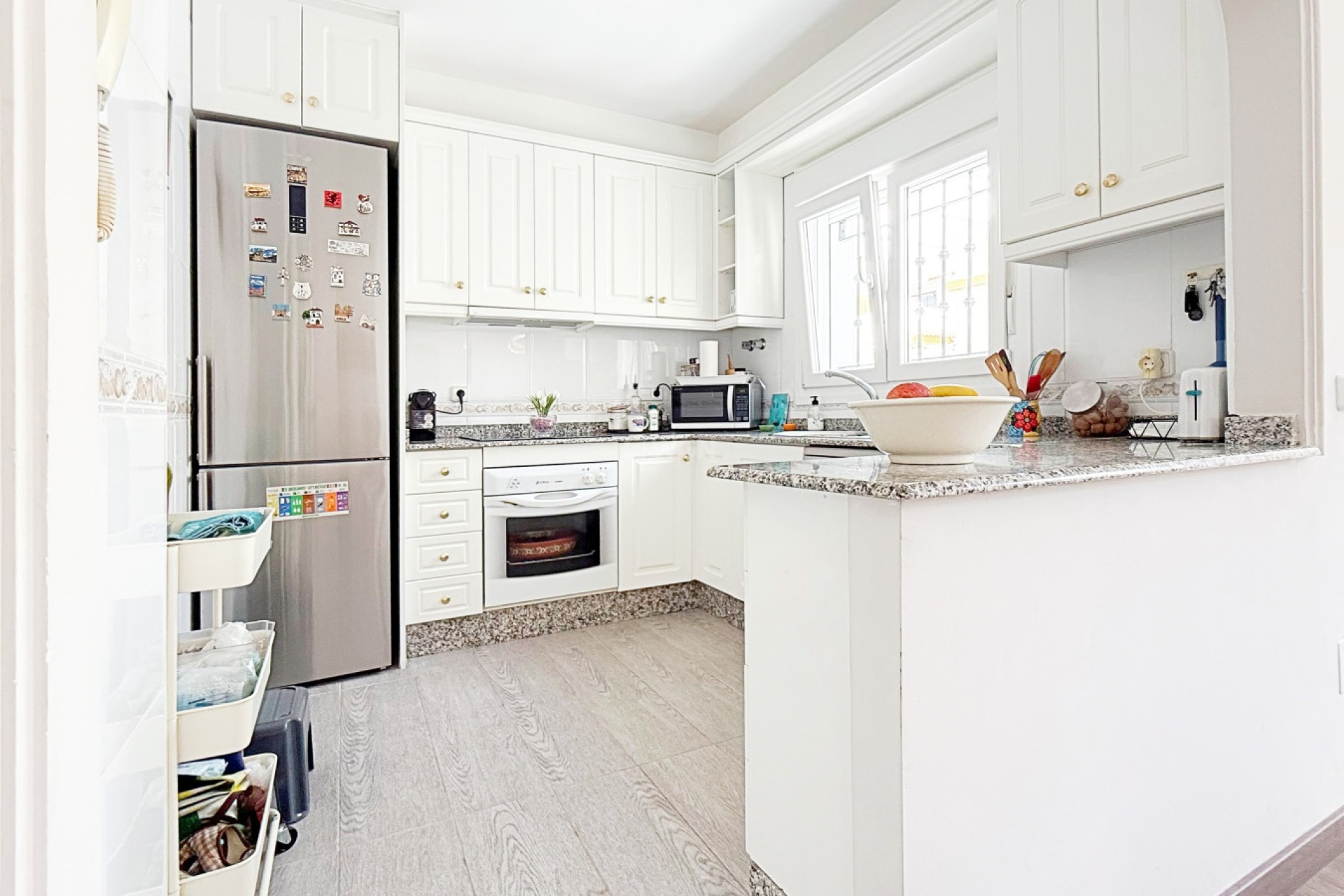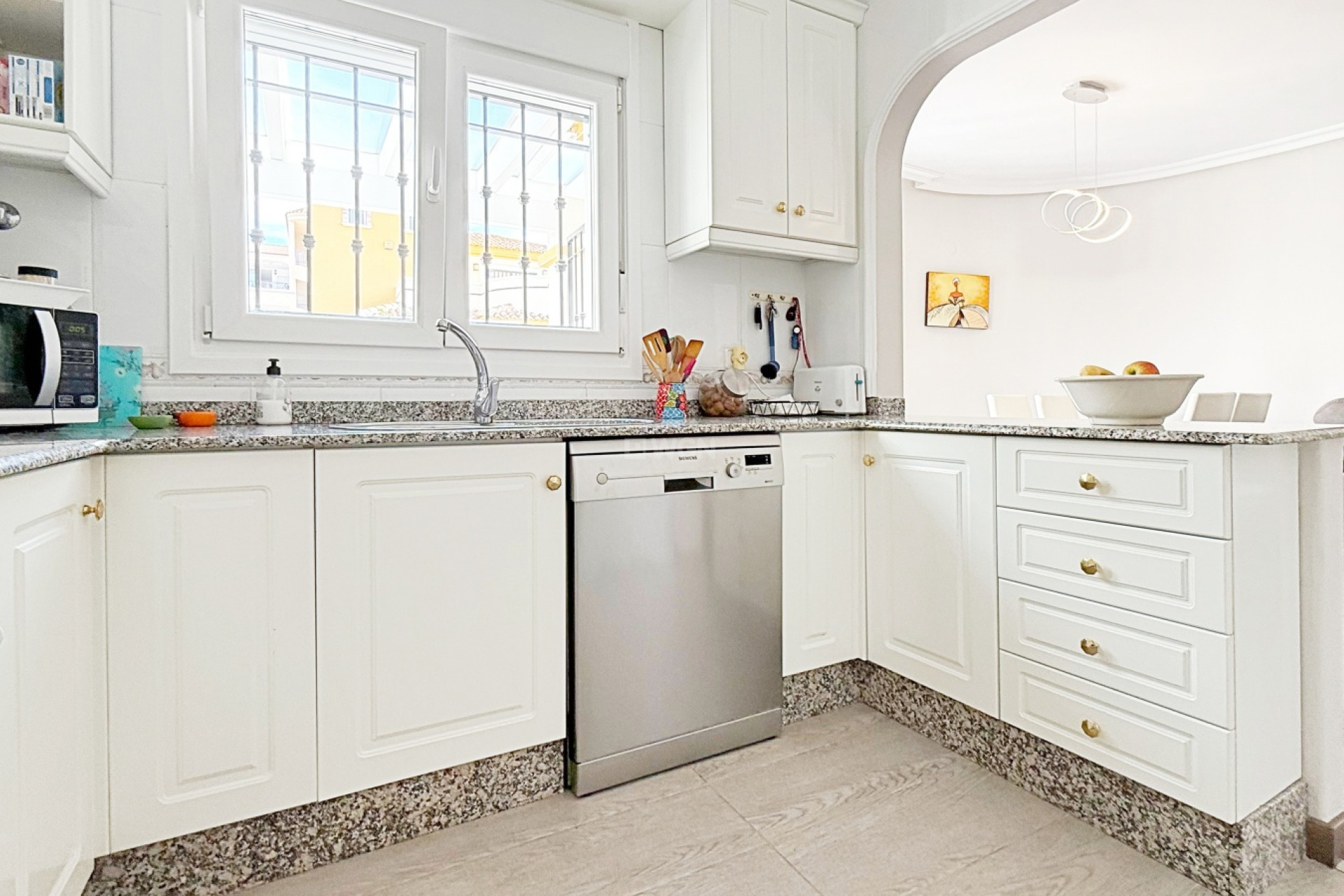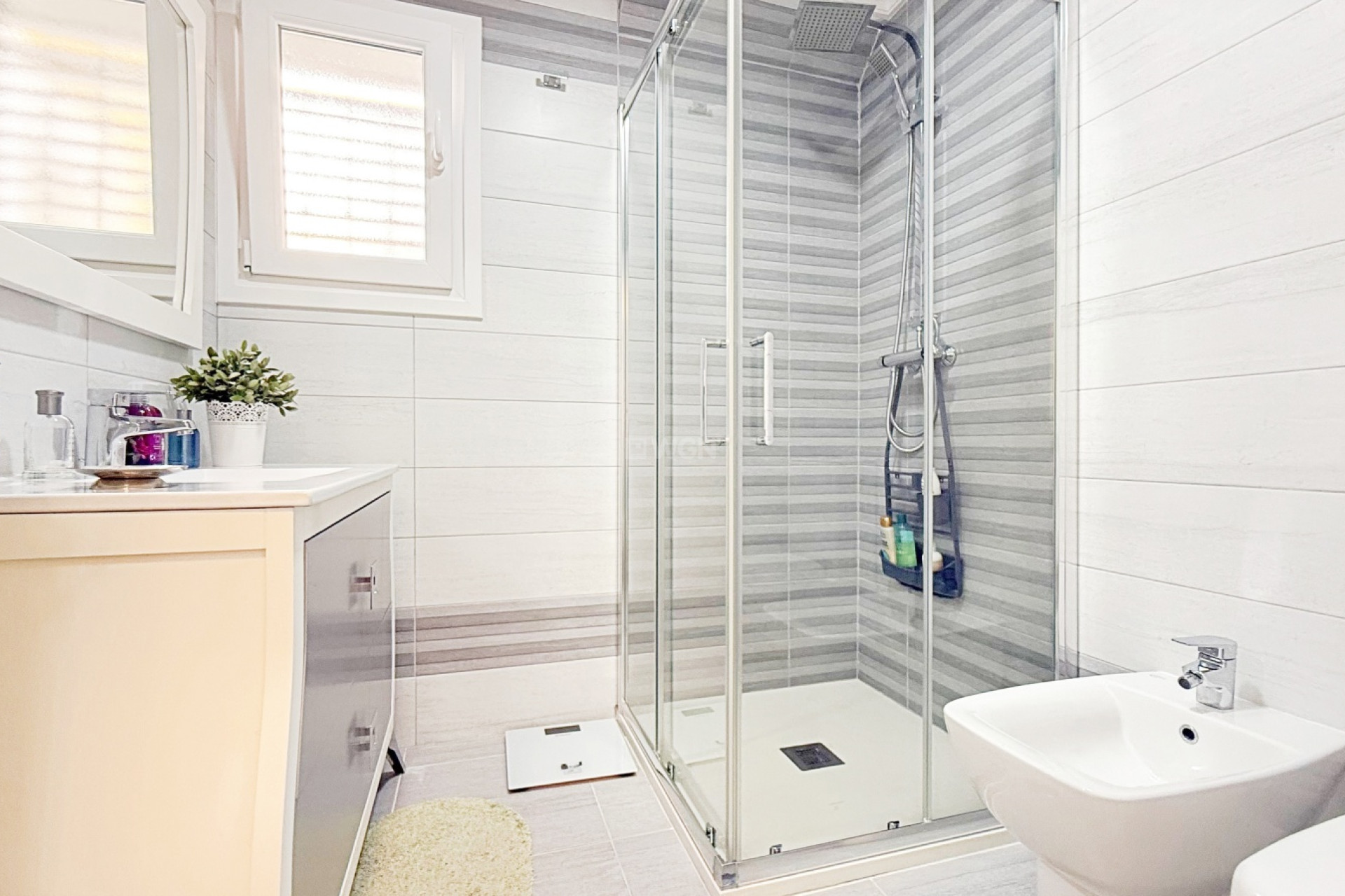 This magnificent detached villa of 105 m², fully renovated and distributed over two floors, is located in a private residential complex with a communal swimming pool, just a short distance from the beach.The ground floor offers a spacious and bright living-dining room with an open-plan kitchen, creating a modern and functional space, ideal for enjoying with family or friends. On this same level there are also two well-sized bedrooms and a fully renovated bathroom, making this floor practical and comfortable for everyday living.The upper floor is dedicated to the master bedroom, a large and bright space with an en-suite bathroom, providing privacy, independence and comfort.The interior has been renovated with high-quality materials: wooden flooring, Climalit double-glazed tilt-and-turn windows, ensuring excellent thermal and acoustic insulation while adding a modern and welcoming style throughout.Outside, the villa offers a private plot with parking area and storage room, providing extra convenience and space. The gated community features landscaped common areas and a communal pool, perfect for enjoying the Mediterranean climate.Its privileged location, very close to the beach and surrounded by all essential services, combines a quiet residential atmosphere with the comfort of having everything at hand.A villa ready to move into, ideal both as a permanent residence and as a holiday home.