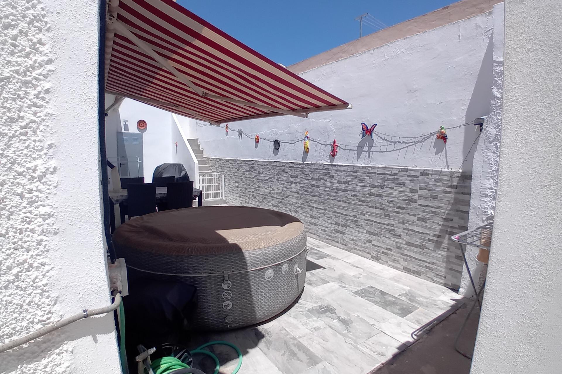 Located in the friendly and well-established community of Camposol, just 15 minutes from the beautiful beaches of Bolnuevo and the vibrant Port of Mazarrón, this 2 bedroom, 1 bathroom villa offers fantastic value and real potential — an ideal opportunity for retirees, holidaymakers, or those looking to relocate to the Spanish sunshine. The property sits on an ample plot and includes, lots of areas to enjoy various times of the day, from the roof terrace, back terrace, cosy front terrace, it also has a great workshop/tool shed, a laundry room and freezer space. The property has a full water filtration system, to purify and ensure quality at all times. The property is Air Conditioned (hot and cold) and has lots of ceiling fans creating plenty of air flow. Heating is provided by a fixed pellet burner, so it's cosy as toast in the winter. A glazed-in front terrace creating a winter lounge room or large indoor dining area, perfect for gatherings. This has all been renovated over time and offers an amazing blank canvas for new residents to move in and start living the dream. One of the standout features is the expansive rooftop solarium offering spectacular 360-degree views of the surrounding mountains and countryside. There is ample space to create a barbecue/outside kitchen and entertaining area with already constructed gazebo with new covers making it an ideal spot for enjoying long, warm evenings with friends and family under the Spanish sky. In addition to the large roof terrace is a large back terrace that is a lovely bistro style for al fresco dining and a jacuzzi, which is included! A lovely private space to enjoy a bottle of bubbles and a cosy dinner. This property is situated on a family friendly street that boasts a real sense of community and friendliness. Camposol is a popular choice among UK and European expats, offering a great sense of community, local amenities including shops, restaurants, medical services, and even a golf course. The urbanisation is conveniently situated just a short drive from the main motorway network, providing easy access to the cultural cities of Murcia and Cartagena, both under an hour away. This is a well-priced property that ticks all the boxes for those seeking lifestyle, location, and long-term potential. Whether you're looking for a holiday home, permanent residence, or an investment in the Spanish property market — this villa is not to be missed. Early viewing is recommended – As this potential don’t stay on the market for long.