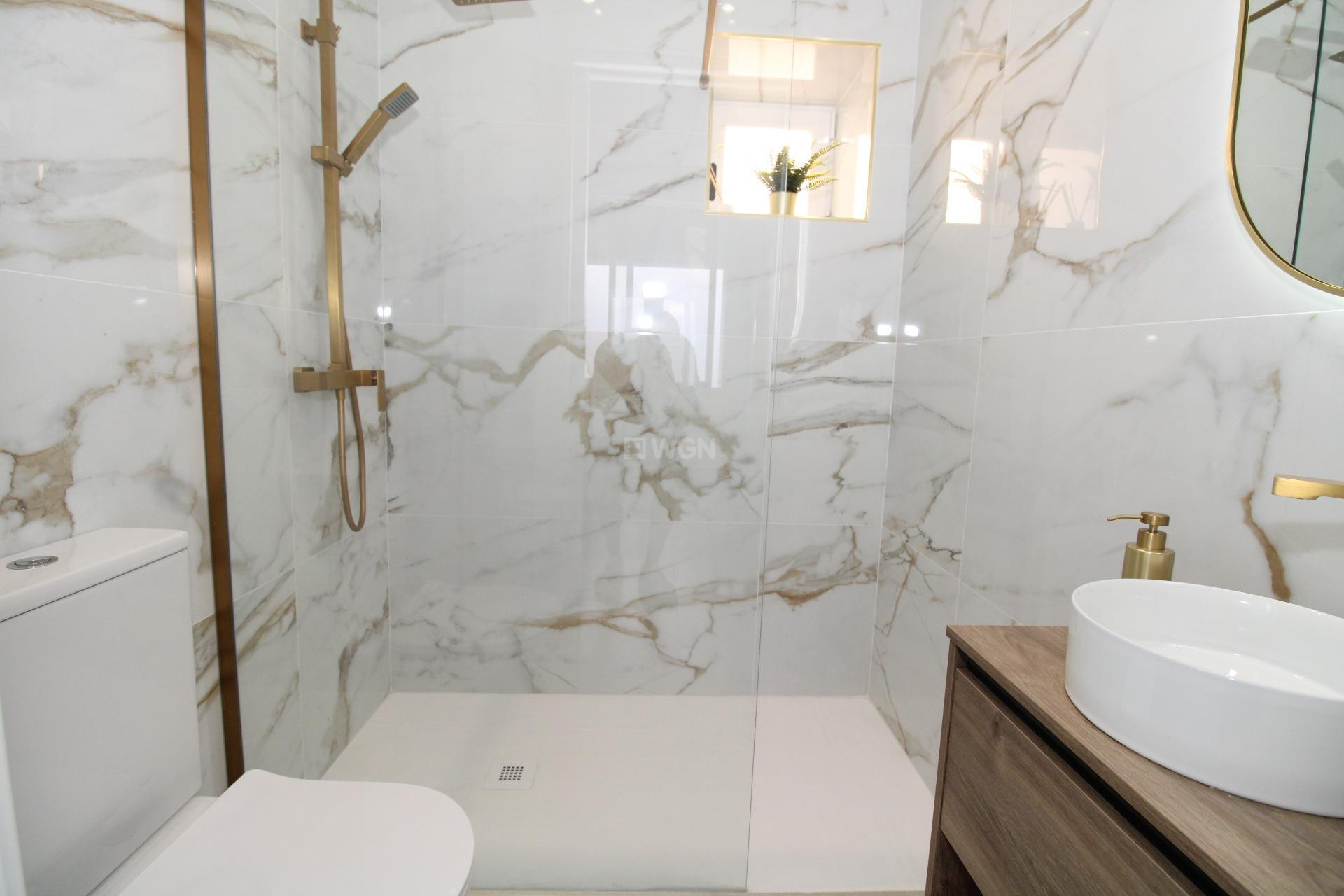 🏡 Mieszkanie na parterze w Lo Pagán — Styl, Komfort i Bliskość Plaży~~Zaledwie 50 metrów od plaży znajduje się to ekskluzywne mieszkanie na parterze, łączące komfort, nowoczesny design i doskonałą lokalizację na wybrzeżu Mar Menor.~~Nieruchomość położona jest na działce o powierzchni 90 m² i łączy w sobie materiały najwyższej jakości z nowoczesnym i funkcjonalnym układem pomieszczeń.~W skład mieszkania wchodzi jasny i przestronny salon z jadalnią, dwie sypialnie z wbudowanymi szafami, oraz dwie w pełni wyposażone łazienki z wykończeniem klasy premium.~W pełni wyposażona kuchnia, zintegrowana z salonem, wyróżnia się blatem i okładzinami ściennymi z wielkoformatowego gresu porcelanowego, które nadają wnętrzu elegancki i nowoczesny charakter.~~Komfort przez cały rok zapewnia system klimatyzacji kanałowej, energooszczędne oświetlenie LED oraz wentylatory sufitowe z wbudowanym światłem LED w sypialniach.~~Mieszkanie sprzedawane jest w pełni umeblowane i gotowe do zamieszkania, z nowoczesnymi meblami i kompletnym wyposażeniem AGD: piekarnik, płyta ceramiczna, okap, lodówka, zmywarka, pralka oraz telewizor 65 cali w salonie.~~Wysokiej jakości stolarka aluminiowa, elektryczne rolety oraz izolacja termiczna i akustyczna gwarantują doskonały komfort wewnętrzny.~Dodatkowo do dyspozycji jest wewnętrzny patio z pralnią oraz oddzielna komórka lokatorska na zewnątrz, oferujące praktyczne i dobrze zaplanowane przestrzenie.~~Każdy detal został starannie dopracowany, aby stworzyć dom o wyjątkowym charakterze, energooszczędności i stylu, w którym bliskość morza i wysoka jakość wykończenia czynią tę nieruchomość prawdziwą perłą w sercu Lo Pagán.~