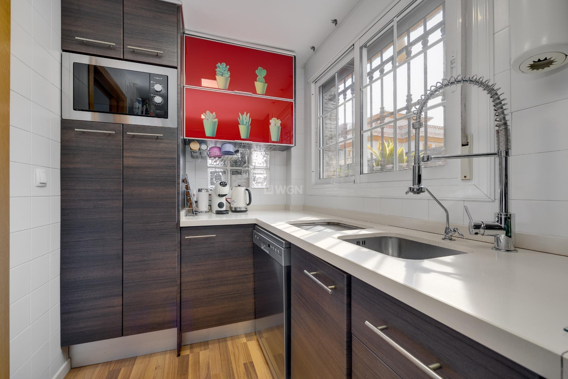 Odkryj ten urokliwy, wolnostojący dom położony w La Herrada w Los Montesinos — spokojnej dzielnicy mieszkalnej idealnej dla osób poszukujących wysokiej jakości życia, prywatności i bliskości wszystkich usług. Dodatkowo znajduje się zaledwie 10–15 minut jazdy samochodem od plaż Torrevieja oraz centrum miasta. Nieruchomość wyróżnia się doskonałym stanem technicznym oraz dbałością o każdy detal, dzięki czemu jest gotowa do zamieszkania od pierwszego dnia. Po wejściu na posesję wita nas piękny prywatny ogród z basenem — idealne miejsce do korzystania z śródziemnomorskiego klimatu. Basen posiada strategicznie rozmieszczone stołki tworzące oryginalną strefę barową w wodzie, idealną do spędzania wyjątkowych chwil. Na zewnątrz znajduje się również strefa grillowa oraz praktyczna komórka gospodarcza. Dom jest rozłożony na trzech dobrze zaplanowanych poziomach. Na parterze znajduje się przestronny i jasny salon z jadalnią z bezpośrednim wyjściem do ogrodu, tworzący idealne połączenie wnętrza z przestrzenią zewnętrzną. Do dyspozycji jest także w pełni wyposażona oddzielna kuchnia, sypialnia dwuosobowa oraz łazienka z prysznicem. Na pierwszym piętrze znajdują się dwie sypialnie, z czego jedna jest szczególnie przestronna i posiada praktyczną strefę biurową. Na tym piętrze znajduje się także łazienka z prysznicem. Na ostatnim piętrze znajduje się pralnia oraz dostęp do spektakularnego prywatnego solarium z panoramicznym widokiem na Różową Lagunę — wyjątkowe miejsce do podziwiania zachodów słońca i natury. Dom posiada klimatyzację, ogrzewanie i jest sprzedawany w pełni umeblowany oraz wyposażony. Wyjątkowa nieruchomość łącząca komfort, prywatność i doskonałą lokalizację. SKONTAKTUJ SIĘ Z NAMI!